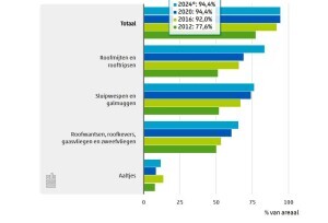 Geplaatst: 12 februari 2026In 2024 werden op 94 procent van het areaal glastuinbouw biologische bestrijders ingezet tegen plagen. Dat is vergelijkbaar met 2020. Wel werden meer verschillende soorten biologische bestrijders op e