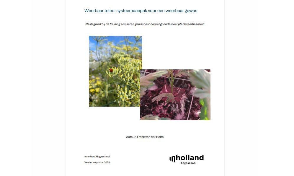 De Hogeschool InHolland heeft een nieuw naslagwerk uitgebracht waarin de biologische basis van weerbaar telen wordt uitgelegd in begrijpelijke taal. Auteur Frank van der Helm*, associate lector Levende Plantenteeltsystemen, beschrijft hoe planten hun eigen afweer activeren en samenwerken met micro-organismen, insecten en schimmels om gezond te blijven.