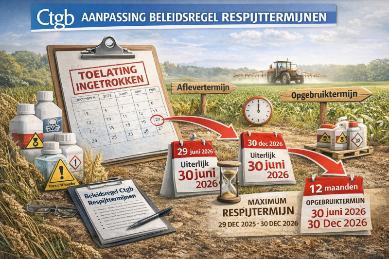 Ctgb heeft onlangs de werkwijze voor het vaststellen van een respijttermijn aangepast. Deze aanpassing van de beleidsregels is op 29 december 2025 gepubliceerd in de Staatscourant en is met ingang van 30 december 2025 in werking getreden. Het besluit beleidsregel respijttermijnen voor gewasbeschermingsmiddelen van 26 augustus 2016 is hiermee ingetrokken.