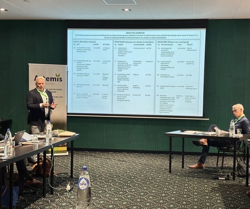 De werkgroep Wet- en Regelgeving Bioprotectants, oftewel biologische gewasbeschermingsmiddelen, heeft in 2025 weer veel werk verzet. Tijdens de algemene ledenvergadering van Artemis op 4 december gaf Gerco Overweg, voorzitter van deze werkgroep, een toelichting op de activiteiten van het afgelopen jaar en schetste hij de plannen voor 2026.