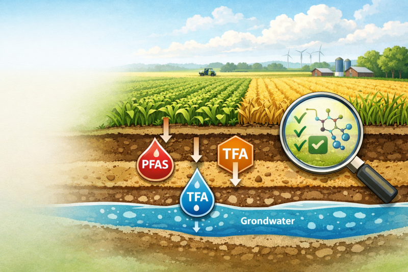CLM heeft in opdracht van zeven provincies en Vewin het gebruik en de risico’s van PFAS-pesticiden en afbraakproducten zoals TFA in 2025 verder onderzocht. TFA (trifluorazijnzuur) is een afbraakproduct van PFAS-verbindingen, ook van diverse PFAS-pesticiden, en is zelf ook een PFAS-verbinding. Ook de kans op ophoping in en verontreiniging van de landbouwbodem was onderdeel van het onderzoek. Het rapport daarover vindt u hier. Daarnaast is de eerder uitgebrachte flyer ‘Overzicht van PFAS-pesticiden in de Nederlandse landbouw’ geüpdatet.
