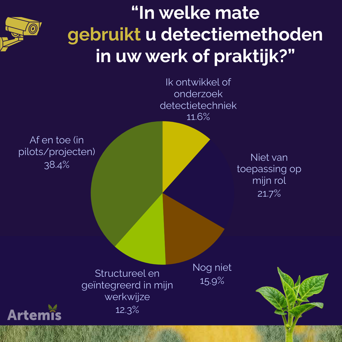 De belangstelling voor het webinar laat zien dat het onderwerp leeft. Ruim 200 deelnemers volgden de sessie live. Uit de polls bleek bovendien dat negen van de tien deelnemers voor zichzelf een rol zien in de verdere ontwikkeling van slimme detectie. Veel deelnemers gaven aan dat zij kennis en ervaringen willen delen, detectietechnieken binnen hun organisatie willen toepassen of willen samenwerken aan verdere ontwikkeling van deze systemen.